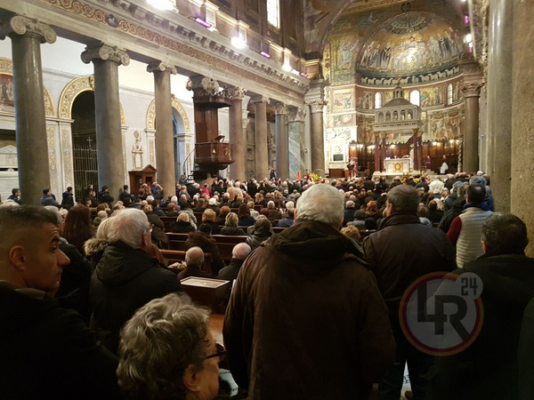 DA SANTA MARIA IN TRASTEVERE MDR - Presso la Chiesa di Santa Maria in Trastevere, dalle 11, si svolgono i funerali di Lando Fiorini, storico cantautore romano e romanista scomparso sabato. Almeno 1000 persone gremiscono la chiesa, dove è presente anche Bruno Conti, arrivato intorno alle 11.15, oltre a una delegazione della Roma composta dai giovani della Primavera, Cargnelutti, Ciavattini e Greco, e il Sindaco della capitale, Virginia Raggi.