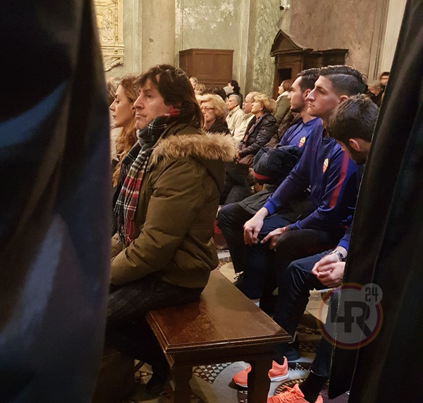 11.40 - Viene diffusa in tutta la chiesa la registrazione di un ave maria di Schubert reinterpretata da Lando Fiorini. All'esterno viene affisso uno striscione del Gruppo Roma che recita: "Dei romanisti sarai sempre er più".