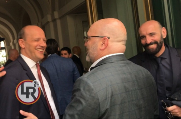 13.05 - Per pranzo il presidente giallorosso viene raggiunto anche da Stillitano, Alex Ferguson e Paolo Maldini. Monchi e Baldissoni lasciano invece l'hotel per recarsi al pranzo dirigenziale con il Barcellona.