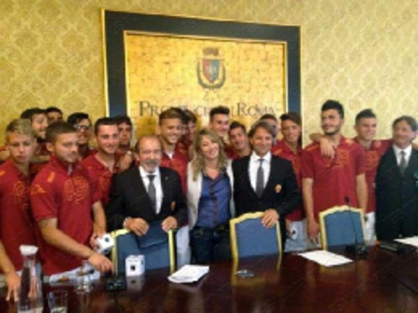 Nella tarda mattinata il Presidente della Provincia di Roma Nicola Zingaretti ha ricevuto presso la sala Don Luigi Di Liegro di Palazzo Valentini giocatori, lo staff tecnico ed i dirigenti della Roma Primavera. La manifestazione, organizzata con il patrocinio dell'Unione Tifosi Romanisti, ha voluto omaggiare la squadra attualmente Campione d'Italia, che lo scorso 22 marzo scorso ha conquistato anche la Coppa Italiae che ora si appresta ora a sfidare il Varese nella fase finale del campionato. Presente anche l'assessore provinciale allo sport Patrizia Prestipino. Il presidente Zingaretti ha conferito ai giovani ragazzi un premio per i meriti sportivi raggiunti .Assenti alla premiazione Piscitella, Politano, Carboni, Pigliacelli, Barba, Verre e Carboni.