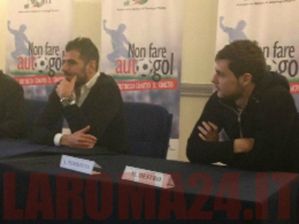 Simone Perrotta e Mattia Destro professori per un giorno contro il cancro. I due giocatori della Roma partecipano al tour nazionale di oncologi e calciatori, dal titolo 'Non fare autogol', che oggi fa tappa a Roma. L'evento e' promosso da Aiom, Fondazione Aiom, Presidenza del Consiglio, Coni, Figc. Teatro dell'incontro il liceo classico Mamiani.