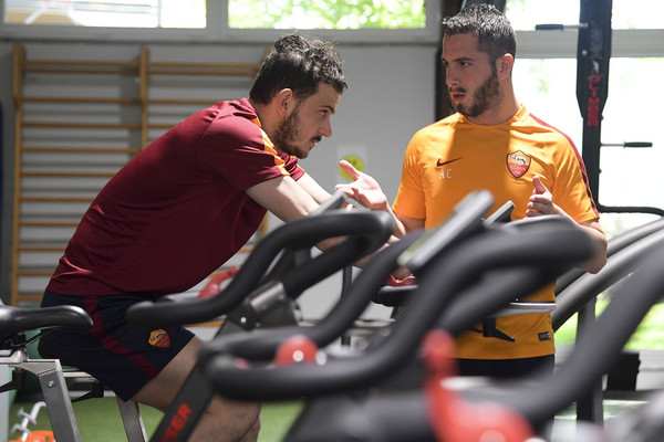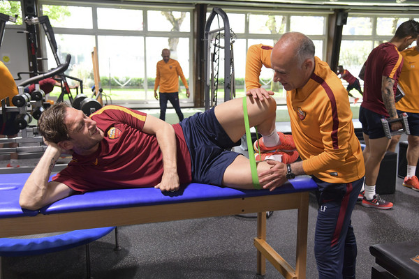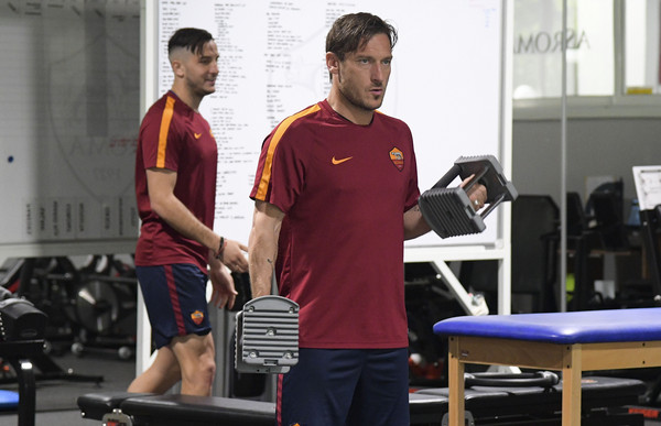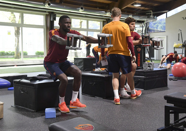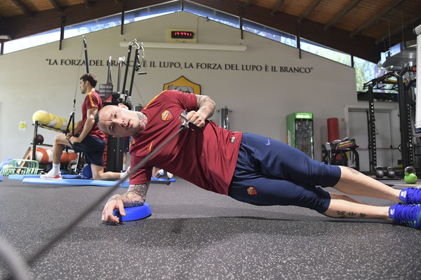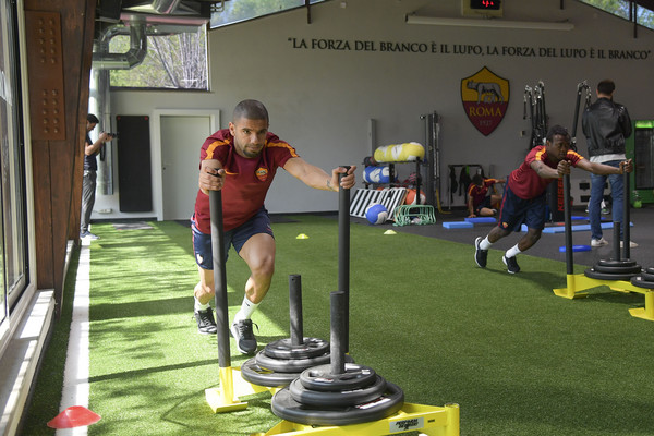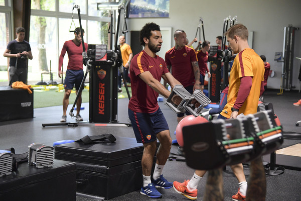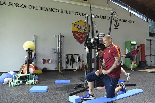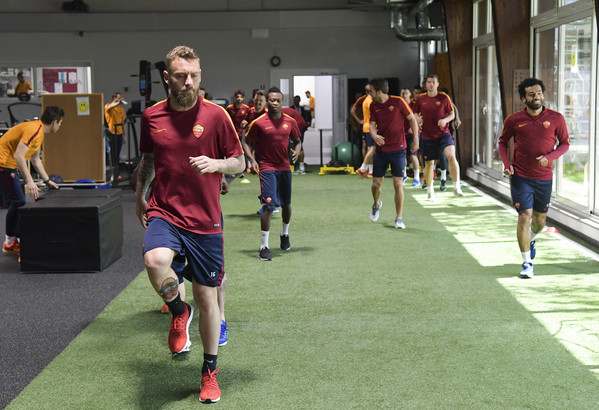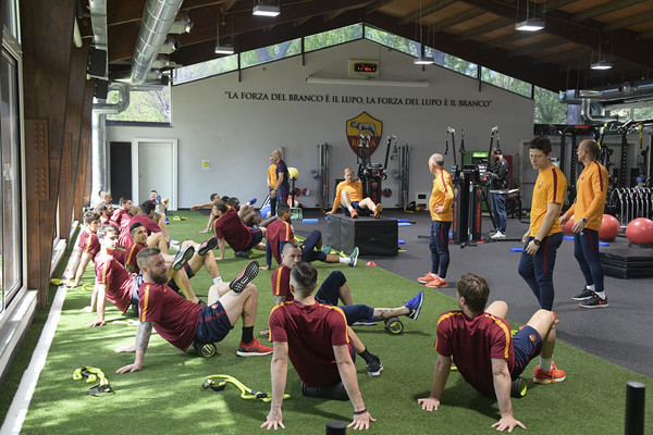 Trigoria, allenamento in palestra per la Roma 12.04.17