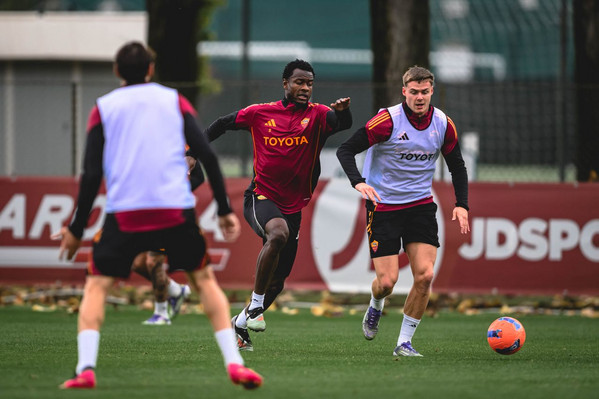 • FOTO - Trigoria: allenamento mattutino. In gruppo Ferguson e Ndicka, ancora differenziato per Dybala e Bailey