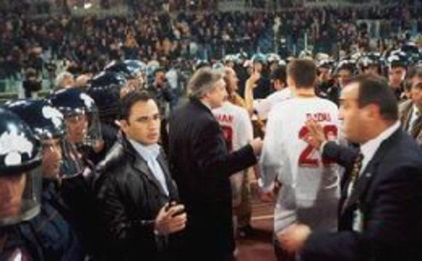 LAROMA24.IT - E' il 13 marzo 2002. La Roma scende in campo per disputare una partita importante di Champions League, gli avversari sono i turchi del Galatasaray. La squadra guidata da Fabio Capello riesce a pareggiare il momentaneo vantaggio di Umit Karan con un gran goal di Cafu, poi nella ripresa la gara si fa spezzettata e i giallorossi, complice anche la vigorìa agonistica dei turchi, si devono accontentare del pari. Ma a fine gara succede di tutto. Già in campo i giocatori se le erano giurate e promesse per più di una volta. Così, al rientro delle due squadre nel tunnel degli spogliatoi, uno scambio di insulti tra giocatori delle panchine e altri che avevano giocato, accende gli animi, tanto da costringere gli agenti di polizia a bordo campo a intervenire. La tensione in campo e' dura in tutto una decina di minuti dopo il fischio finale, ma è come fossero ore.