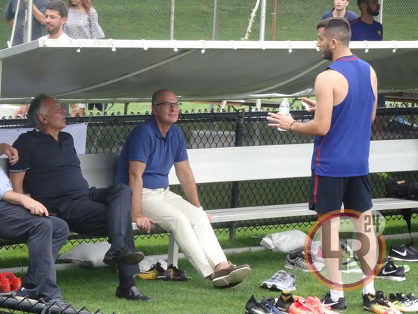 DA BOSTON DAMIANO FRULLINI - Primo giorno a Boston per la Roma e prima seduta di allenamento all'Ohiri Field, presso il complesso della Harvard University. Puntuale il presidente James Pallotta che dopo un veloce saluto con tutti i giocatori e lo staff giallorosso, si è intrattenuto in un colloquio di circa 5 minuti con Kostas Manolas tra battute e risate che lasciano presagire a una conclusione positiva della trattativa per il rinnovo del contratto del difensore greco.