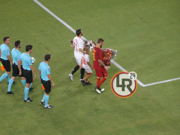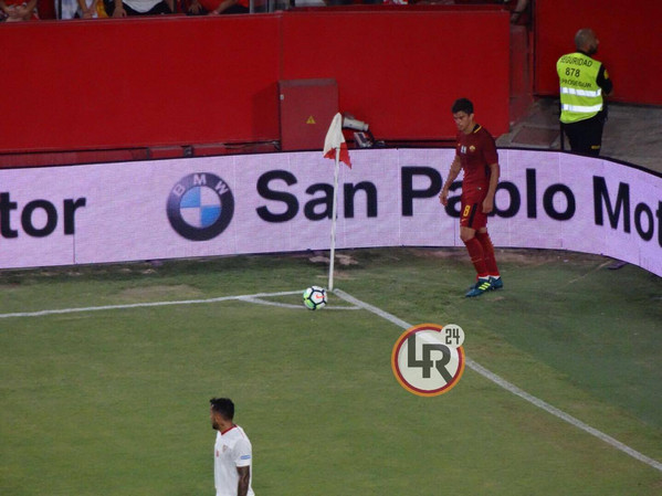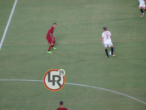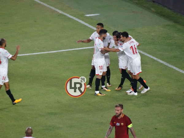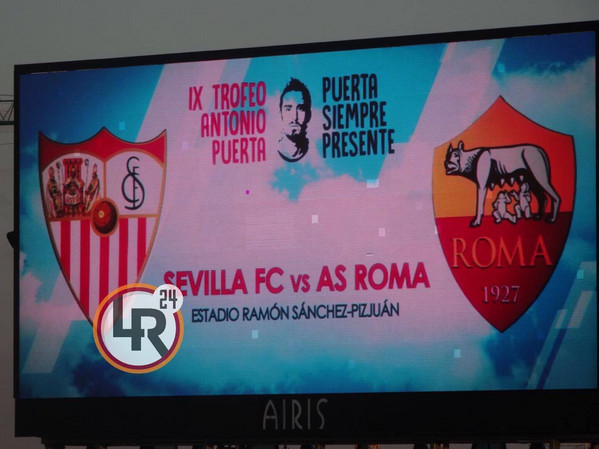 Battuta d'arresto per la Roma. I giallorossi escono sconfitti dal confronto del Trofeo Antonio Puerta. Allo stadio Ramon Sanchez-Pizjuan finisce 2-0 per il Siviglia grazie alle reti di Escudero e Nolito nel finale di partita, con Dzeko che accorcia le distanze in pieno recupero. Questi gli scatti della serata:
