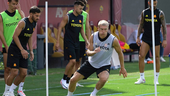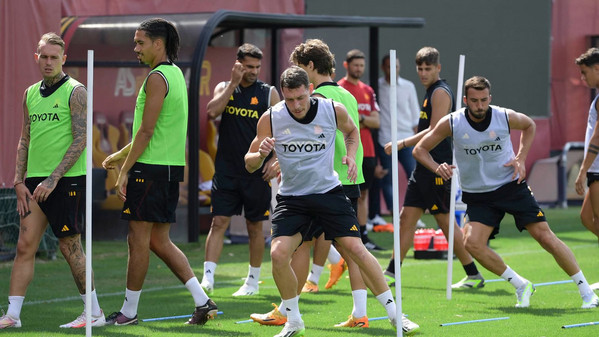 La Roma è tornata ad allenarsi al centro sportivo 'Fulvio Bernardini' di Trigoria dopo il giorno di riposo concesso da José Mourinho in seguito all'amichevole con la Farense del 2 agosto. I giallorossi hanno svolto una seduta questa mattina: out Matic, per il serbo si tratta di normale gestione dei carichi di lavoro. Tra i calciatori presenti nell'allenamento odierno figurano Giacomo Faticanti, capitano della Roma Primavera, e il nuovo acquisto classe 2004 Filippo Alessio (prima chiamata con i grandi). Ecco i migliori scatti della seduta odierna.