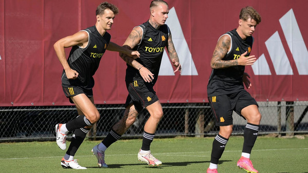 La Roma continua a lavorare al "Fulvio Bernardini" di Trigoria in vista dell'ultima amichevole della pre-season contro il Partizani Tirana, in scena sabato sera, ultimo test prima dell'avvio del campionato. Anche oggi non si sono allenati con il gruppo Paulo Dybala e Nemanja Matic, mentre sono stati aggregati anche il 2004 Giacomo Faticanti, i due 2006 Lovro Golic e Mattia Mannini e l'attaccante classe 2004 Filippo Alessio. Gli scatti della seduta odierna: